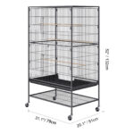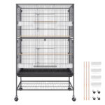 Jaula Grande de Pie para Pájaros VEVOR de 52 Pulgadas – Jaula de Vuelo de Hierro Forjado para Periquitos, Cacatúas, Loros y Guacamayos con Base con Ruedas y Bandeja